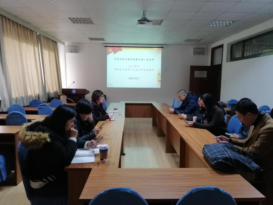 2020年12月3日,澳门十大电子正规游戏网站教工第一党支部在博文楼312会议室召开主题党日活动,活动主题为学习贯彻中国共产党第十九届五中全会精神,并围绕“课程思政面对面”主题进行专题大讨论。会议由教工第一党支部书记王薇主持,澳门十大电子正规游戏网站教工第一党支部党员参加此次会议。