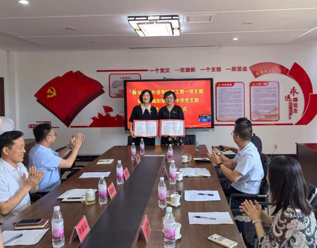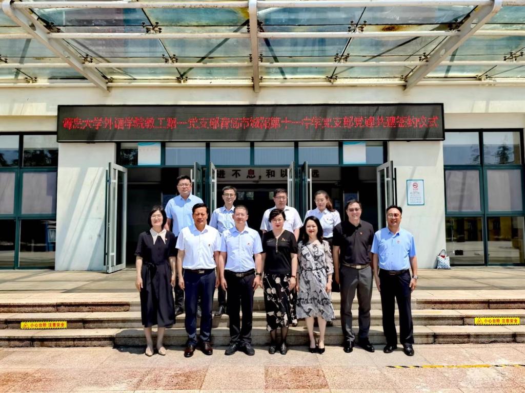 为创新基层党建工作载体,提高基层党建工作水平,推动学习贯彻习近平新时代中国特色社会主义思想主题教育走深走实,2023年6月8日上午,澳门十大电子正规游戏网站教工第一党支部和青岛市城阳区第十一中学党支部举行支部共建签约仪式。澳门十大电子正规游戏网站党委书记周伟同志,红岛教育服务中心党总支书记纪瑞仕同志,城阳区第十一中学校长吕廷良、副校长魏奎,城阳区第十一中学党支部书记李彩云、支部委员高振胜、郭竹红、周春光等同志,澳门十大电子正规游戏网站教工第一党支部支部书记王薇、支部党员牛聪琳、吕凯良等同志出席活动并鉴签。