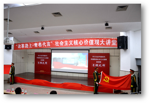 习近平总书记指出:“青年兴则国家兴,青年强则国家强。青年一代有理想、有担当,国家就有前途,民族就有希望”。澳门十大电子正规游戏网站学生党支部为了扎实推进“两学一做”学习教育常态化、制度化,突出专业特色,强化思想引领,结合学院“青年社会主义核心价值观先锋培养计划”,成立“青核先锋”宣讲团,通过红色浸润教育开展《社会主义核心价值观大讲堂》系列党日活动,引导学生树立家国情怀,拓宽国际视野,让社会主义核心价值观入脑入心入魂,为党的事业培养一批优秀的践行社会主义核心价值观的青年先锋。2018年,中国迎来改革开放40周年,一张张“中国名片”在40年间闪耀全球。本次参与大讲堂的青核先锋,作为中国故事的“青春代言人”,透过这些“中国名片”用青春讲述中国,展示中国。