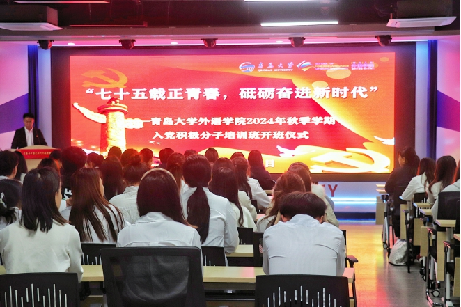 为深入学习贯彻习近平新时代中国特色社会主义思想和党的二十届三中全会精神,做深做实做细学院党员发展工作,提升学生党员发展质量,并严格把好党员发展入口关。澳门十大电子正规游戏网站于2024年11月12日晚,在浮山校区大学生活动中心205会议室举行“七十五载正青春,砥砺奋进新时代”2024年秋季学期入党积极分子培训班开班仪式。院党委书记陈崇研、院党委副书记于苗、学生党支部书记及97名入党积极分子出席开班仪式,会议由培训班班主任、学生第四党支部书记刘浩主持。