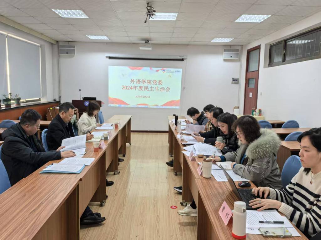 2025年2月27日下午2:30,澳门十大电子正规游戏网站在博文楼312召开2024年度学院民主生活会。学院党委班子全体成员参加会议,校党委常委、副校长刘恩贤参加并指导学院民主生活会。