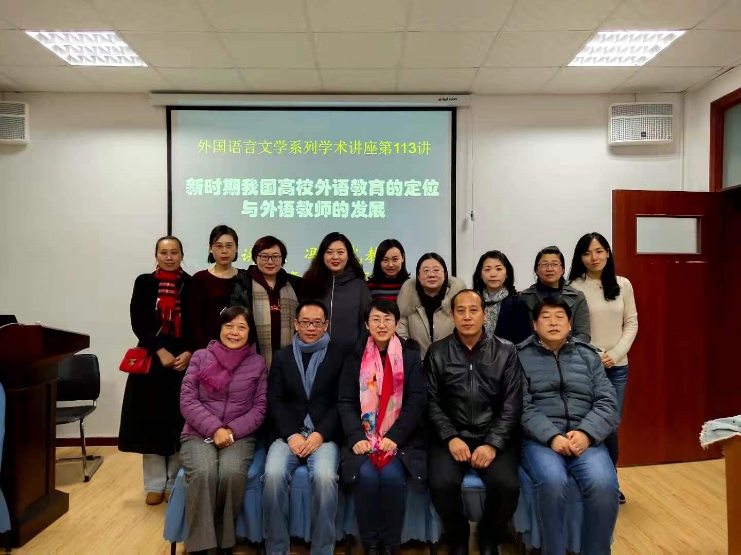 最后,冯教授针对新时期外语类专业改革和大学(公共)外语教学改革要求,指出大学英语教师应研究外国语言文学、关注大学英语教学改革、关注相关专业的教学改革。外语教育的理想状态是“实现教研、科研良性互动,以教学研究为出发点、以科学研究为落脚点。”