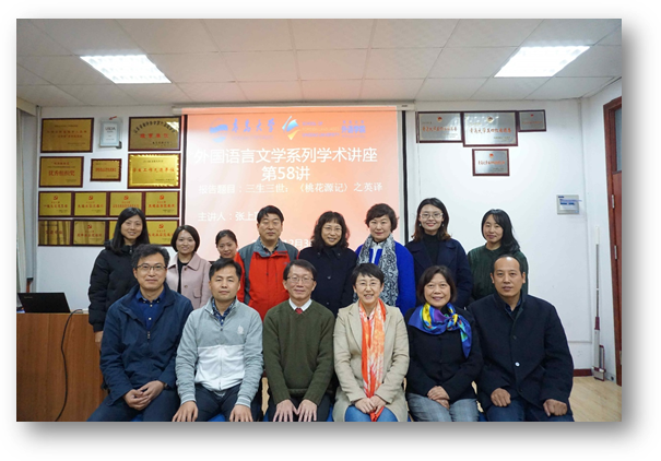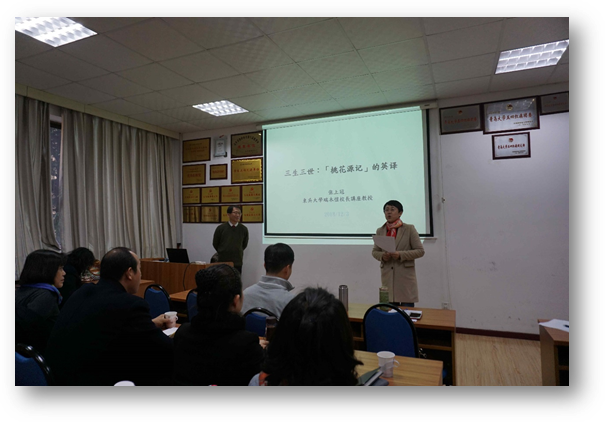 12月3日下午,澳门十大电子正规游戏网站在博文楼312会议室举行“外国语言文学系列学术讲座”第58讲。翻译理论及文化研究著名台湾学者张上冠教授应邀作“三生三世:《桃花源记》之英译”的专题学术讲座。院长卞建华主持讲座,学院部分老师及研究生参加此次讲座。