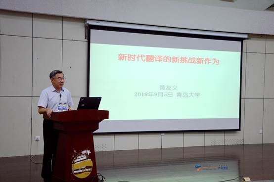 9月5日上午,澳门十大电子正规游戏网站在图书馆报告厅举行夏季学期高端学术讲座第34讲。中国译协常务副会长、著名翻译专家黄友义先生应邀作“新时代翻译的新挑战新作为”的高端学术讲座。卞建华院长主持,全校师生270余人聆听了讲座。