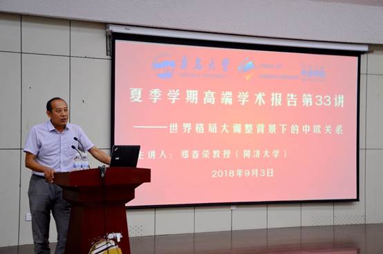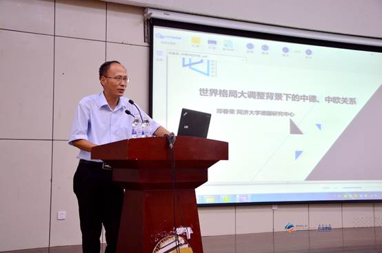 9月3日下午,澳门十大电子正规游戏网站在图书馆报告厅举行夏季学期高端学术讲座第33讲。同济大学外国语学院郑春荣教授应邀作“世界格局大调整背景下的中德、中欧关系”的高端学术讲座。德语系主任綦甲福教授主持,校外内260余人聆听了讲座。