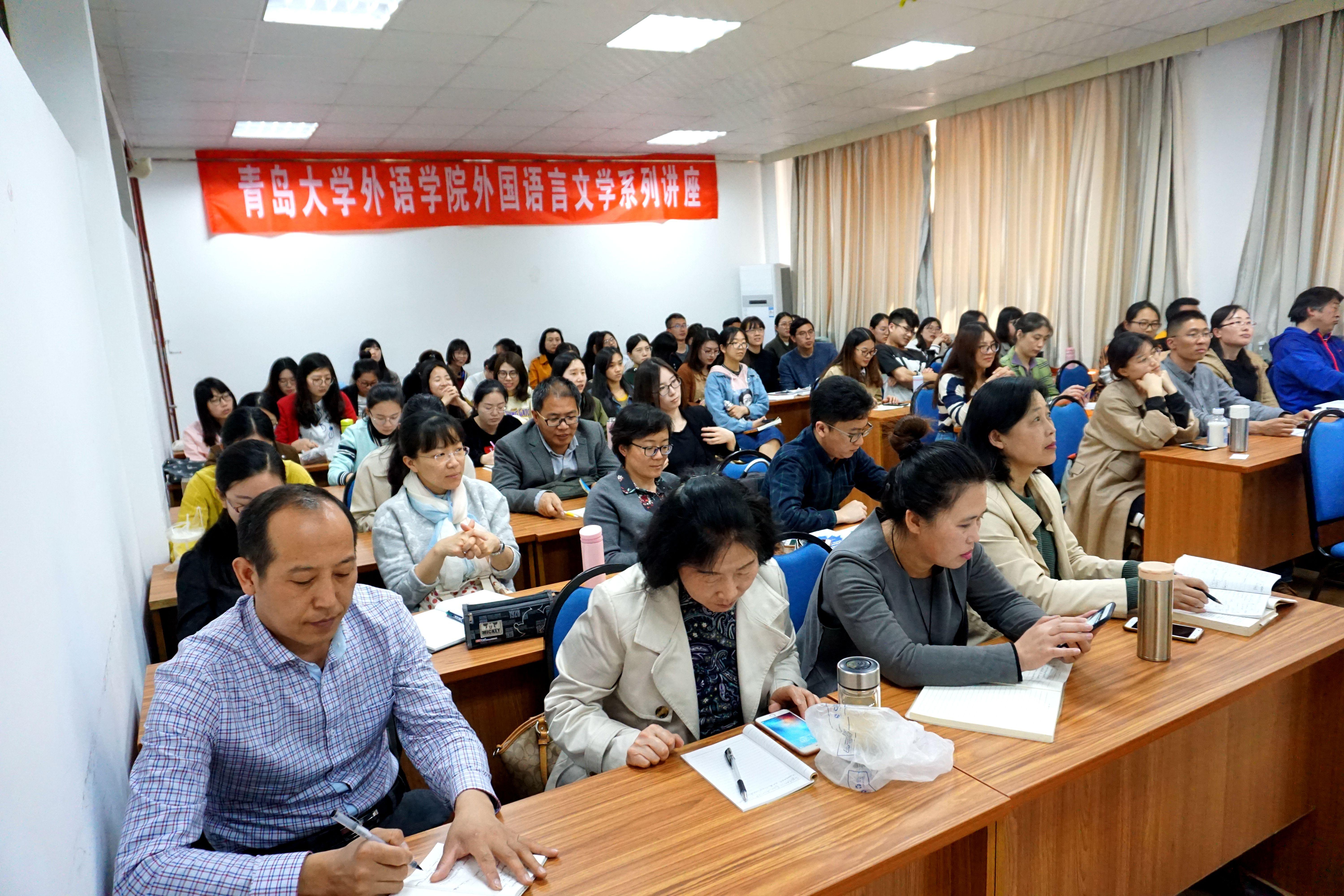 讲座开始前,Tom Bartlett博士还为英语专业同学专题介绍了卡迪夫大学硕博士项目招生情况,重点解读了该校英语、交际与哲学学院下设语言学、应用语言学、法律语言学、语言与交际等硕士项目的优势与特色、课程设置与考核要求、以及招生评估程序与机制等学生关心的焦点问题。