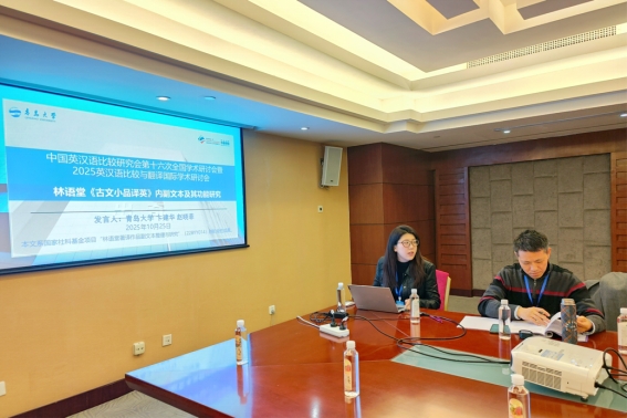 “中国英汉语比较研究会第十六次全国学术研讨会暨2025英汉语比较与翻译学术研讨会”由中国英汉语比较研究会主办,全国新文科教育研究中心、山东大学外国语学院承办。不同研究领域的学者在英汉语言对比、翻译研究及中西文化对比三大板块之下,共同探讨外语学科的时代新使命以及新文科背景下外语学科的交叉融合与实践创新。十大电子正规游戏官网师生积极参与此次学术研讨会,同与会专家学者深入交流最新研究进展,并与十大电子正规游戏官网2022届校友上海大学在读博士贾楠同学见面交流,积极宣传了十大电子正规游戏官网教学与研究成果