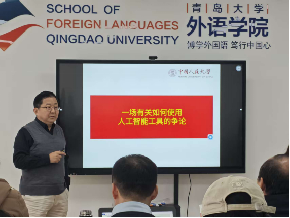 2025年12月12日,澳门十大电子正规游戏网站在浮山校区博文楼204室成功举办“人工智能时代,学习外语专业的意义与价值”学术讲座。本次讲座特邀中国人民大学全民阅读教育研究院院长郭英剑教授主讲,澳门十大电子正规游戏网站院长卞建华主持,吸引了学院众多教师及研究生同学的积极参与