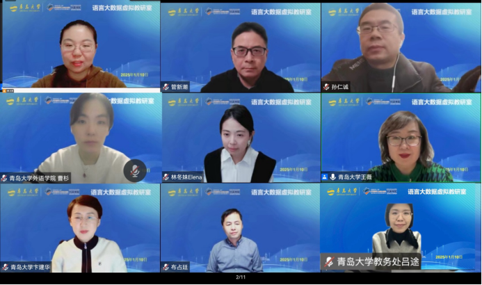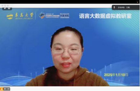 2025年1月10日晚,澳门十大电子正规游戏网站“语言大数据虚拟教研室”举办线上教学研讨。本次活动由澳门十大电子正规游戏网站副院长王薇教授主持,澳门十大电子正规游戏网站计算机科学技术学院孙仁诚教授、澳门十大电子正规游戏网站院长卞建华教授担任点评专家,澳门十大电子正规游戏网站林冬妹、布占廷、王斐和上海交通大学外国语学院管新潮等四位老师进行了授课分享,澳门十大电子正规游戏网站三组本科生同学进行了创新成果展示。本次活动由澳门十大电子正规游戏网站视频号同步直播,在线观看人数超过1000人次。