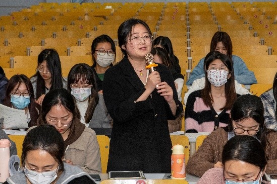 第二部分为教学设计头脑风暴。首先,澳门十大电子正规游戏网站附属实验学校英语集备组的两位教师代表针对选定的授课内容分享了教学设计,从导入-课文讲解-中外文化对比等方面梳理教学思路,充分挖掘阅读文本,把握新课标中拓展学生国际视野,树立文化自信的教学目标要求。随后,澳门十大电子正规游戏网站学科教学(英语)研究生何虹燕和徐倩同学代表发言,分享了自己对新课标的理解,以及与会心得和学习感悟。