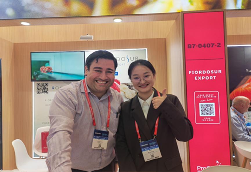 参与志愿翻译服务的同学们也纷纷表示,自己在渔业博览会上得到了极大的锻炼和提高,不但提高了西班牙语水平,还与远道而来的拉美客人们结下了深厚的友谊。“这次的口译工作虽然只有短短三天,但是将会成为我永生难忘的经历,”来自20级的田悉蓉这样说到,“我还感受到了很多温暖,有太多个感动的瞬间。”另一位翻译志愿者国家祎同学也表示,“通过这次展会我学到了很多东西,也掌握了很多专业术语。通过和智利展商的交流,我了解了很多当地的风土人情,这次渔博会开拓了我的眼界,拓展了我的知识面,让我受益匪浅!”