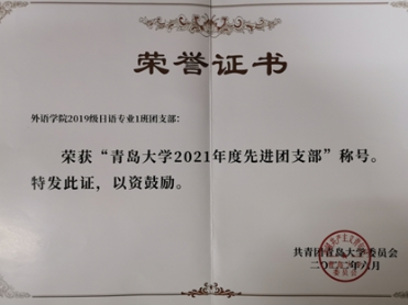 支部重视改革和创新,不断活跃团支部的工作、强化团支部的功能,采用多种多样的学习形式定期开展思想教育活动,如沉浸式团课、小组交流会、七国习语金句和社会主义核心价值观宣讲等,以思想为抓手,加强团支部思想引领,让基层团支部真正强起来。团支书范艺龄同学是学院博语习研会的工作骨干,在担任习研会会长的一年间,依托学院力量,高质量高标准带领团支部深入开展“四史”学习,明确初心使命,团支部全体成员也化身“智囊团”,全程参与了博语习研会出品的19期《七国习语金句》推送中的翻译校对工作,以及学院第四届、第五届、第六届核心价值观宣讲比赛的筹划、举办全过程。团支部关注每位同学的思想状况,以全面提高同学们的自身素质为目标,致力于寻找适合每位同学的学习激励制度,以自主创新精神激发同学们的实践兴趣,努力让每个人都能感受到日语1班大家庭的温暖。通过学习小组,团支部成员学业为先、共同进步,超过半数同学获得过学习优秀奖学金,8人次获得过国家励志奖学金,实现了集体与个人的共同发展。