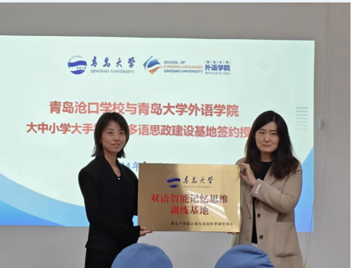 澳门十大电子正规游戏网站脑认知与语言科学研究中心王曼与青岛沧口学校教导主任王妮为记忆思维训练基地揭牌