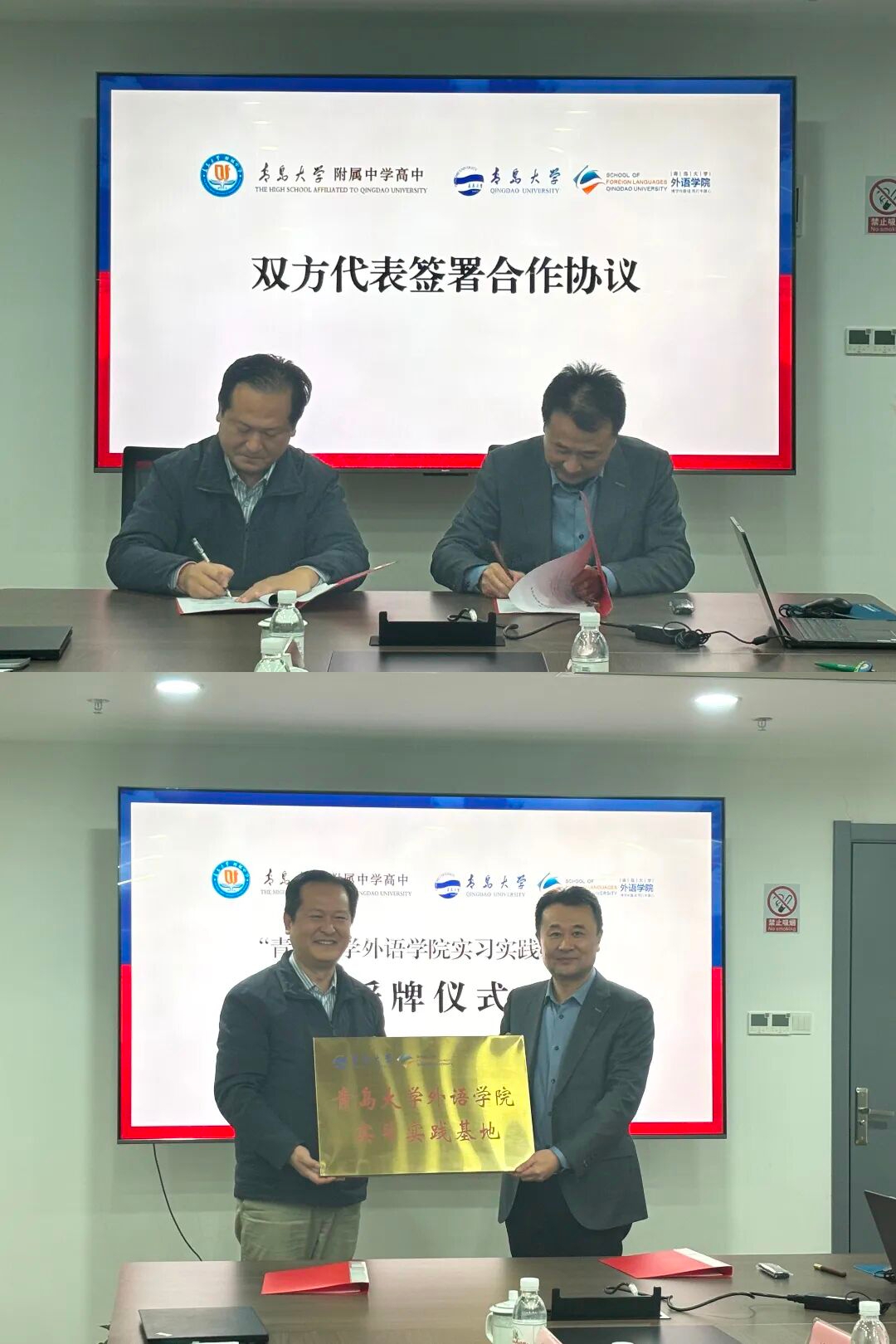 随后,进入协议签署与授牌环节。澳门十大电子正规游戏网站党委书记陈崇研与青大附中高中校长张金堂作为双方代表,郑重签署合作协议。陈崇研书记向张金堂校长颁授“澳门十大电子正规游戏网站实习实践基地”牌匾。