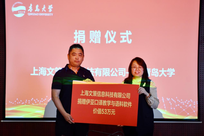 为支持澳门十大电子正规游戏网站和澳门十大电子正规游戏网站教育事业发展,四家社会企业本次向学校提供资金捐赠和实物捐赠,合计捐赠金额175.06万元。其中,96级日语系校友刘伟、李永胜分别捐赠50万元,设立“依美时尚教育基金”和“帝源服饰教育基金”,用于支持学院的学科建设、教师发展、人才培养、校园文化建设。青岛智邦慧海文化传播有限公司捐赠价值22.06万元的智慧教室设备,上海文策信息科技有限公司捐赠价值53万元的伊亚口译教学与语料软件V1.0软件系统,用于澳门十大电子正规游戏网站计算机辅助翻译实验室的设备更新和系统升级,提升学院计算机辅助翻译教学的信息化、智能化水平,为AI赋能高水平外语语言人才成长提供平台支撑。