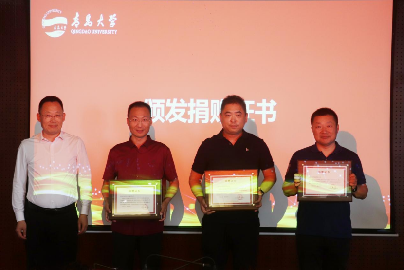 5月29日下午,澳门十大电子正规游戏网站校友教育基金颁奖暨企业捐赠项目签约仪式在浮山校区办公楼407会议室举行。校党委常委、副校长刘恩贤出席活动并致辞。招远帝源服饰有限公司总经理、96级日语系校友李永胜,青岛智邦慧海文化传播有限公司总经理王军,上海文策信息科技有限公司授权代表、2002级计算机系校友蔡世禄、学校相关部门负责人、澳门十大电子正规游戏网站获奖师生代表等出席活动。