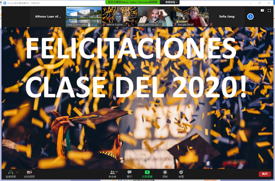 5月13日,美国佛罗里达国际大学(以下简称FIU)校长罗森博格博士通过网络会议软件Zoom,向我校2020届中外西班牙语专业毕业生致辞,祝贺各位同学即将获得FIU学位,并预祝大家如期毕业。