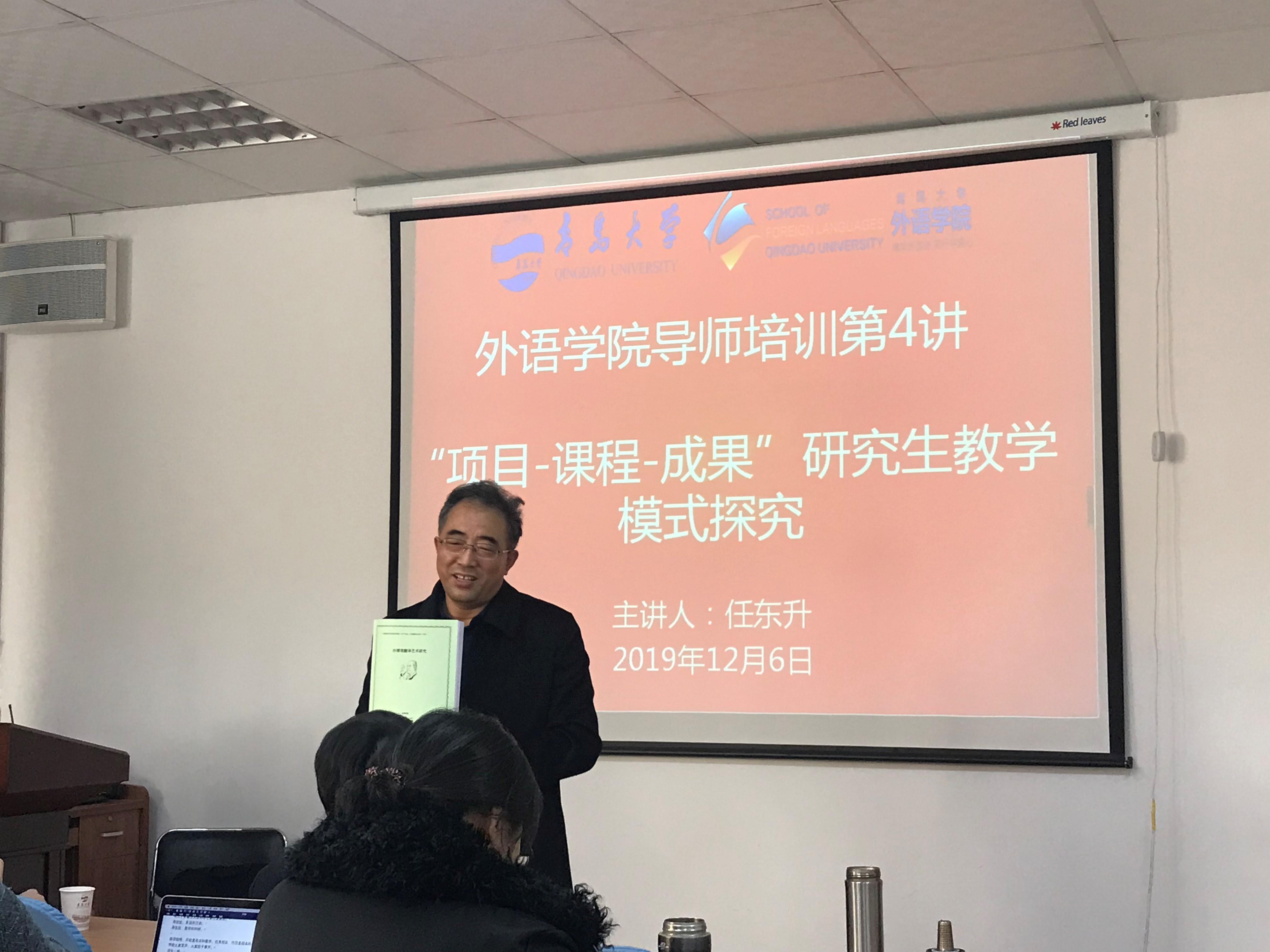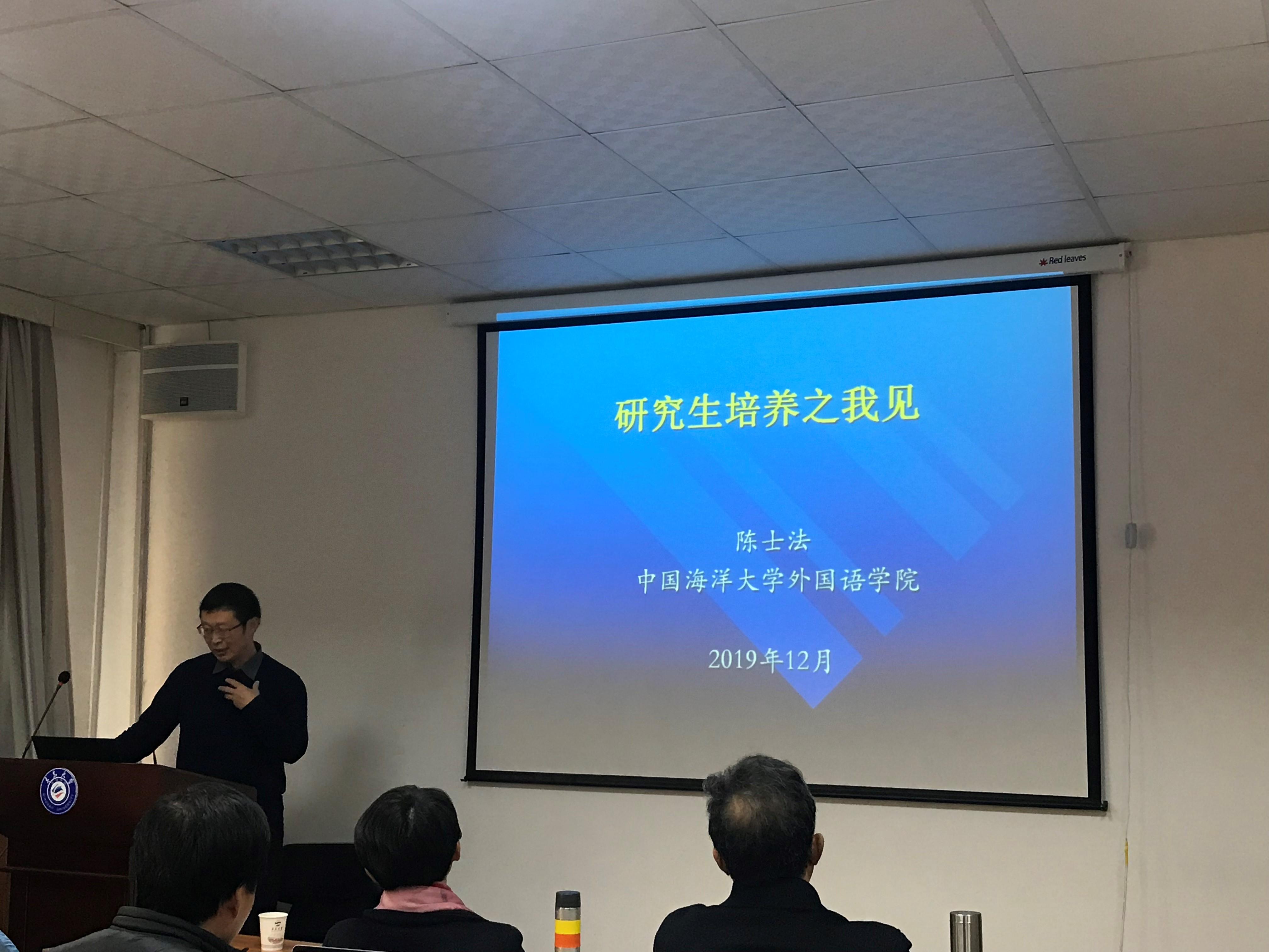 12月6日,澳门十大电子正规游戏网站在博文楼312会议室举行研究生导师培训会第四讲和第五讲。中国海洋大学外国语学院博士生导师任东升教授、陈士法教授应邀为老师们带来了精彩的培训讲座。澳门十大电子正规游戏网站研究生院丛海林院长、潘秋鸿副院长出席并讲话,澳门十大电子正规游戏网站卞建华院长主持会议,学院全体研究生导师参加了培训会。