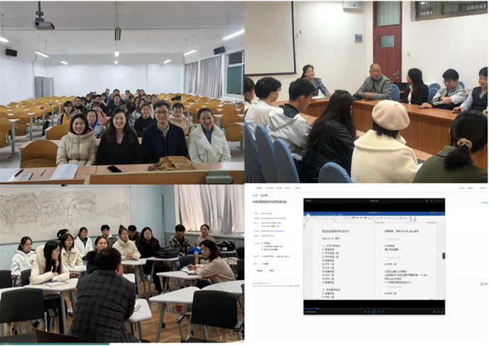 西班牙语系借助腾讯会议进行了线上的期中师生座谈会。参加座谈会的除了系里老师外,还有四个年级普通西语专业和2017、2018、2019级中外西语专业班长和团支书同学。学生代表均反映了本年级学生的问题积疑虑,老师给出了整改措施。除此之外,系里决定,一方面引导教会学生自主学习,不做“乖乖学生”,学会主动学习,另一方面针对个别学生开启个性化指导,规划个性化学习路线。