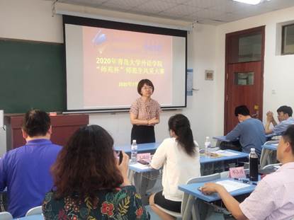 7月4日上午,澳门十大电子正规游戏网站 “师苑杯”师范生风采大赛在博文楼308成功举行。本次比赛邀请青岛洮南路小学王璐瑶老师、青岛九中匡文超老师、青岛四中陆洋老师和十大电子正规游戏官网娄永强副院长、布占廷副院长、英语教育系副主任王进福老师、黄芳教授、宋蕾副教授、徐平老师、施慧老师一起担任评委。澳门十大电子正规游戏网站王乐教授担任特约嘉宾,澳门十大电子正规游戏网站部分本科生和研究生前来观摩学习。比赛中选手们表现优异,充分展现了澳门十大电子正规游戏网站英语师范生良好的专业素养和蓬勃的精神风貌。