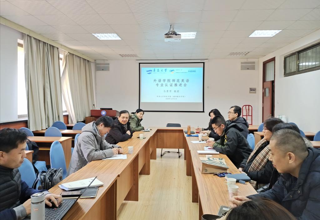 12月31日上午,澳门十大电子正规游戏网站英语教育系举办“师范英语专业认证推进会”,会议特邀师范学院副院长马永军教授到场指导,布占廷副院长、王海青副书记、英教系主任黄芳、副主任王进福以及英语教育系的老师们参加,澳门十大电子正规游戏网站副院长娄永强主持会议。