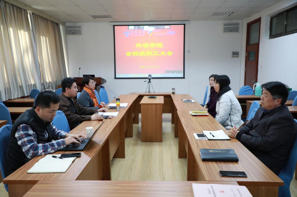 2月27日下午,澳门十大电子正规游戏网站召开全院教职工大会传达学习学校会议精神并部署新学期工作,学院党政领导在博文楼312会议室参加现场会,教职工通过钉钉线上参加视频会议,会议由院党委书记王传永主持。