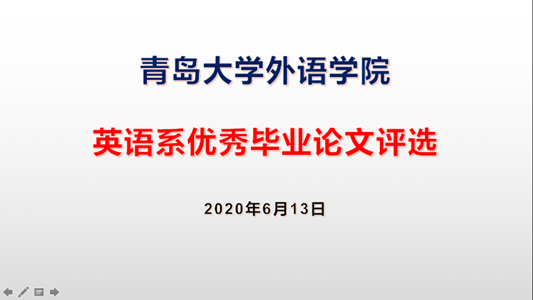 为促进本科生培养质量和学士学位论文质量的提高,鼓励创新精神,提高英语系本科学位论文的总体水平,澳门十大电子正规游戏网站英语系2020年春季学期启动了优秀本科论文评选活动,并于6月13日下午举办了优秀论文在线评选会。