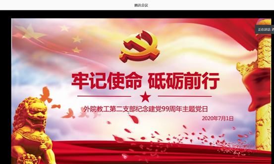 7月1日下午,澳门十大电子正规游戏网站教工第二党支部利用腾讯会议召开了牢记使命,砥砺前行——庆祝建党99周年主题党日”活动。活动由教工第二党支部书记崔花主持,二支部教师党员参加会议。与会党员结合疫情期间自身感受表达了对建党99周年的祝福。
