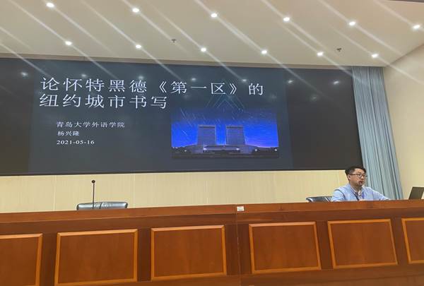 2020级研究生杨兴隆同学就“怀特黑德《第一区》的纽约城市书写”做了汇报,指出小说中个体对纽约的向往以及城市空间对个体的压抑剥削,而纽约城市作为灾难中的支撑和归属,重建纽约则是一种平复灾难创伤的行为。