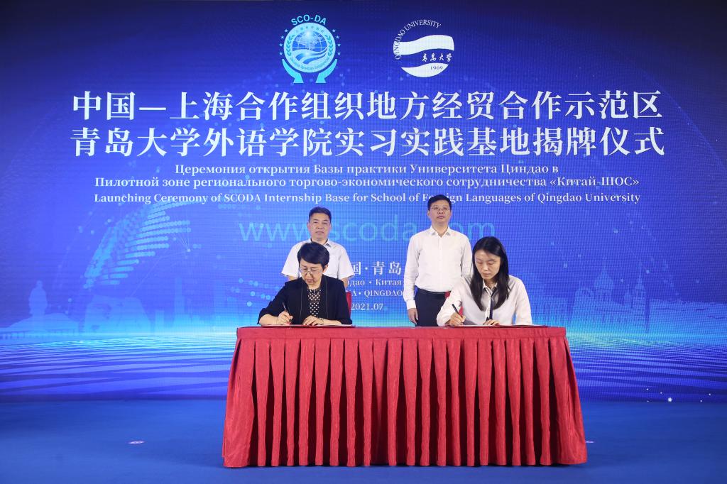 仪式上,校党委副书记杜方波、上合示范区党工委委员、管委会副主任孟庆胜、澳门十大电子正规游戏网站党委书记王传永、胶州市委宣传部副部长赵法文、胶州融媒体中心副主任任献文共同启动上合示范区五语种官方网站上线(试运行),澳门十大电子正规游戏网站院长卞建华与上合示范区管委商旅文化部部长夏鹏共同签署了共建实习实践基地协议,杜方波与孟庆胜共同为澳门十大电子正规游戏网站实习实践基地揭牌。