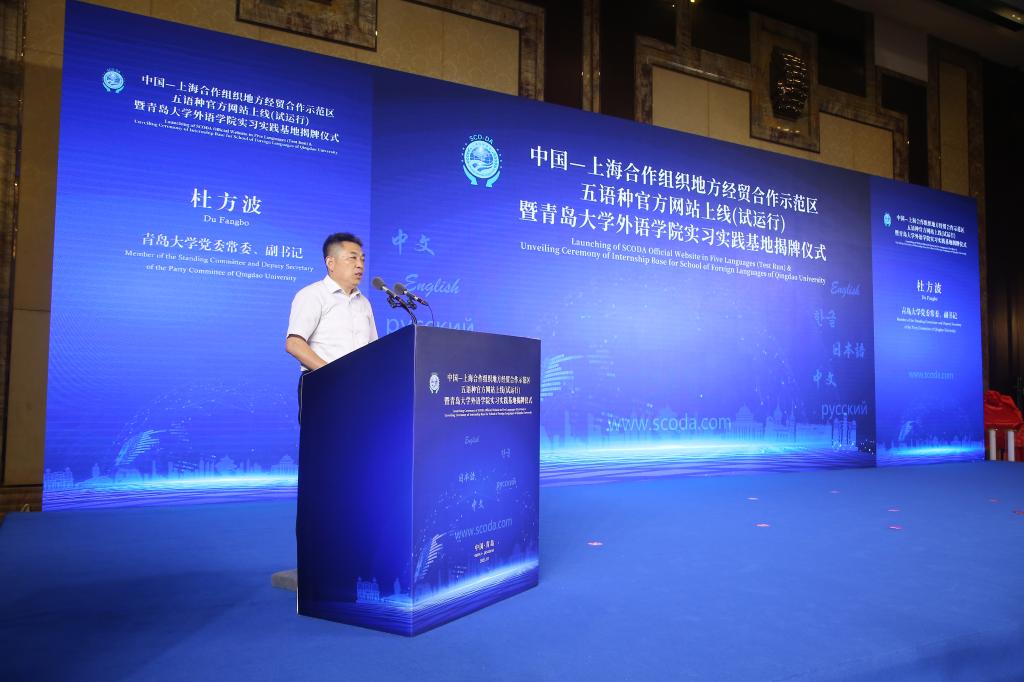 7月12日上午,上合示范区五语种官方网站上线(试运行)暨澳门十大电子正规游戏网站实习实践基地揭牌仪式在胶州喜来登大酒店隆重举行。校党委副书记杜方波、上合示范区党工委委员、管委会副主任孟庆胜、澳门十大电子正规游戏网站院长卞建华出席仪式并致辞,澳门十大电子正规游戏网站党委书记王传永、副院长娄永强、院长助理曹杉及澳门十大电子正规游戏网站师生、上合管委会、上合示范区园区企业代表参加了仪式。仪式由上合示范区管委会综合部部长孙正永主持。
