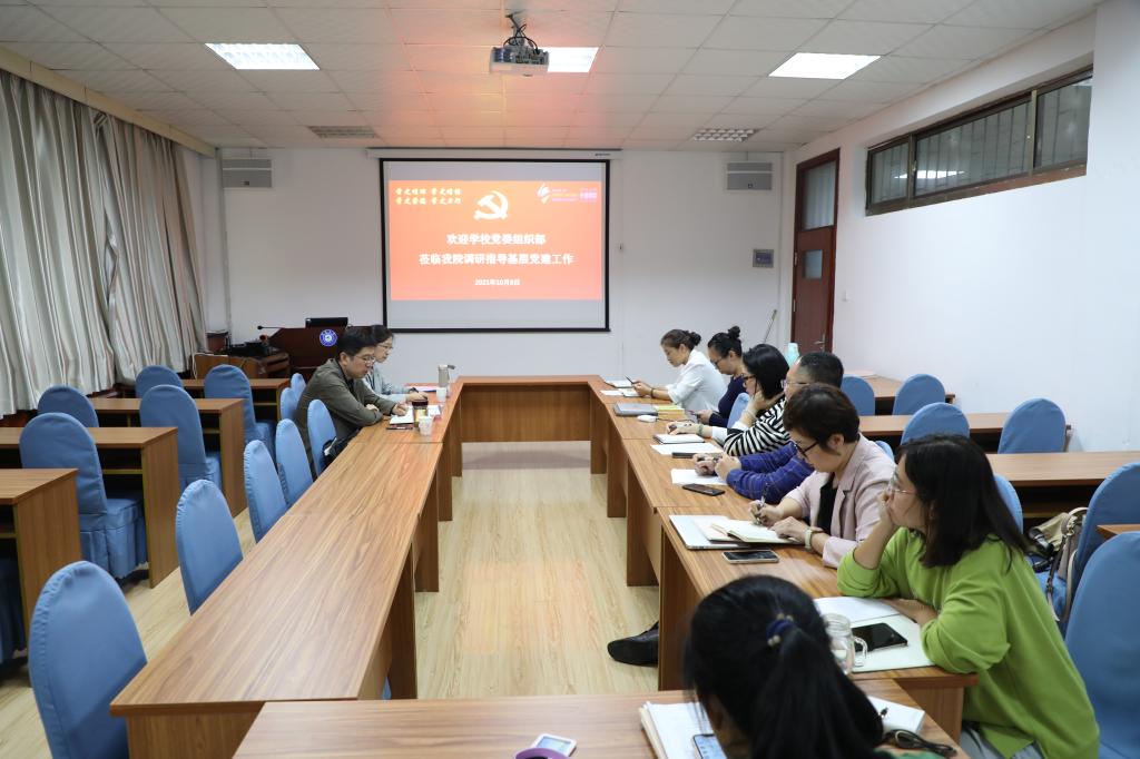 10月8日下午,学校党委组织部吴鹏副部长、王静主任到十大电子正规游戏官网开展基层党建工作专项调研。澳门十大电子正规游戏网站党委副书记王海青,学院党支部书王薇、华登峰、米娟、贾嘉、明洁、寇磊及教工第二党支部纪检委员黄怡容老师参加会议,会议由王海青主持。