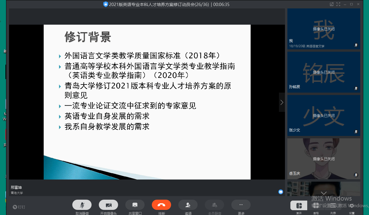 为做好英语专业本科专业人才培养方案的修订工作,落实教育部《英语类专业教学指南》与《澳门十大电子正规游戏网站修订2021版本科专业人才培养方案的原则意见》,3月19日晚,英语系在线召开本科人才培养方案修订动员会,澳门十大电子正规游戏网站院长卞建华参加,英语系全体教师出席会议,会议由英语系主任邢富坤主持。