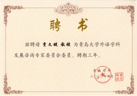为进一步推动我校外语学科快速发展,提升澳门十大电子正规游戏网站教学、科研整体水平,澳门十大电子正规游戏网站近日聘请北京外国语大学王克非教授、北京外国语大学贾文键教授、广东外语外贸大学黄忠廉教授、上海交通大学彭青龙教授、西南大学文旭教授为我校外语学科发展咨询专家委员会委员。