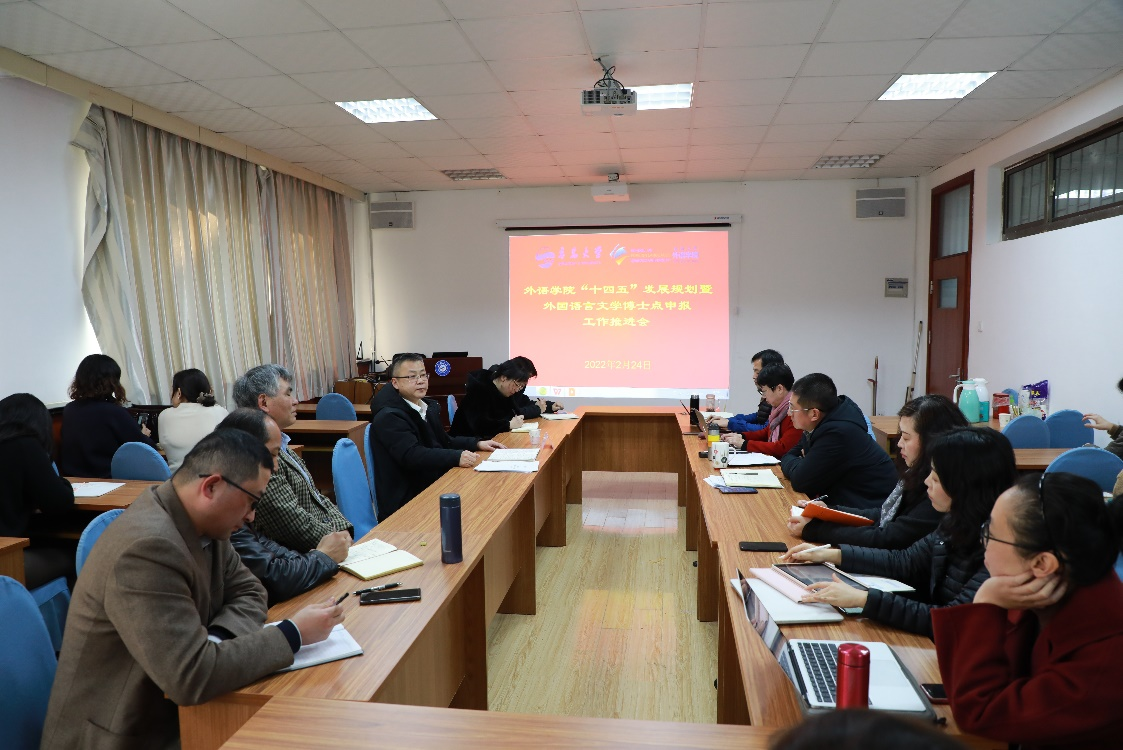 接着,布占廷副院长简要回顾了上一轮博士点申报情况,从不足、对标和措施等三个方面汇报了外国语言文学博士点学科建设方案,并通报了一些具体工作的推进情况。