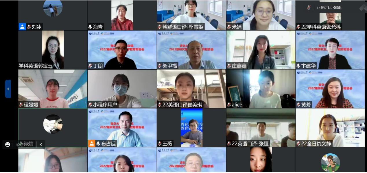 9月8日下午,澳门十大电子正规游戏网站2022级研究生新生开学典礼暨入学教育报告会在线上举行。澳门十大电子正规游戏网站党委书记周伟、院长卞建华,党委副书记王海青,副院长宫英瑞、布占廷、娄永强、院长助理曹杉,学院学术委员会、学位委员会、各学科负责人、各教学系主任、导师代表、研究生辅导员米娟、全体新生参加了此次报告会,报告会由宫英瑞主持。