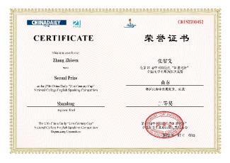 7月3日下午,由中国日报社、可口可乐杯大中华区联合主办的第27届中国日报“21世纪·可口可乐杯”全国英语演讲比赛山东赛区总决赛圆满落幕。共有来自中国海洋大学,中国石油大学,澳门十大电子正规游戏网站,烟台大学等多所省内高校的26名选手入围决赛,角逐国赛晋级名额。我校澳门十大电子正规游戏网站李衍璐(指导老师孙旻),张智文(指导老师孙旻)两名同学荣获二等奖。