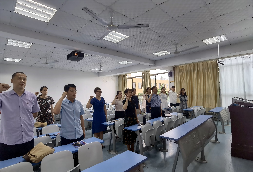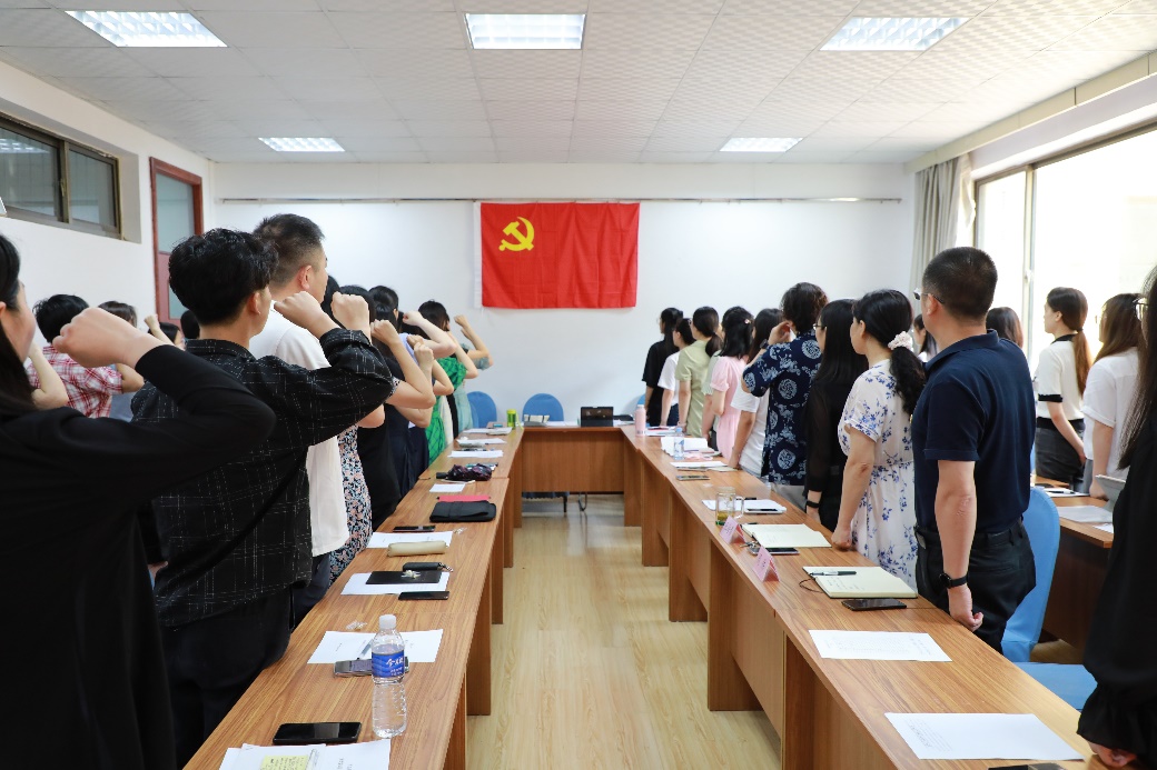会议首先进行了讨论接收预备党员议程,教工第二党支部接收杨昊、马一凡两位老师为中共预备党员,学生第三党支部接收程媛媛等硕士生9人、孟婷婷等本科生37人为中共预备党员。在党的生日这个特殊的日子里,48名优秀的同志光荣地加入了中国共产党。