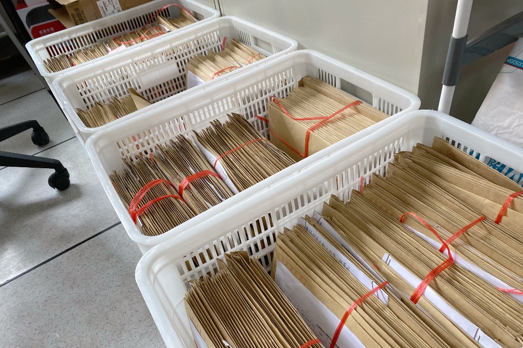 6月13日至17日期间,澳门十大电子正规游戏网站学生第四党支部全体师生党员齐齐上阵,共整理、核对学生档案484份。7月1日,恰逢建党101周年,学生第四党支部2022届本校升学毕业生党员在符合防疫规定的情况下集中返校,与支部其他师生党员一起,联合澳门十大电子正规游戏网站机关党支部学工办、教科办、院办教师党员,携手开展毕业生党员档案封装志愿服务活动,在2022届毕业生档案派发工作中积极发挥出了党员的先锋模范作用。学生党员和教师党员一起为毕业生服务,对毕业生档案材料逐项清点,认真、仔细核对相关信息,发现问题及时处理,避免材料缺少、装错等问题的发生,确保精准到人、准确无误后再进行封装。