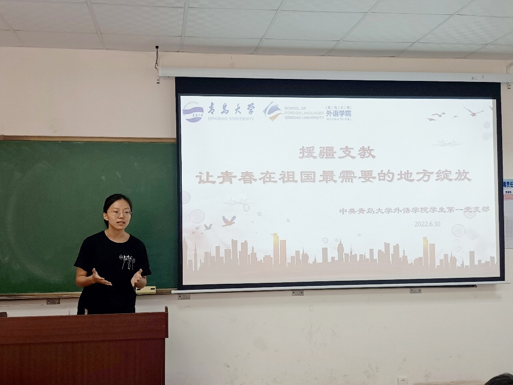澳门十大电子正规游戏网站学生第一党支部、学生第二党支部联合共建,即将组队派出师生志愿者前往新疆开展支教活动,6月30日下午,支部于博文楼308教室举办“援疆支教,让青春在祖国最需要的地方绽放”主题党日活动。学生一支部全体党员和入党积极分子、学生二支部即将出征的入党积极分子参与本次活动,活动由学生第一党支部书记张淑敏老师主持。