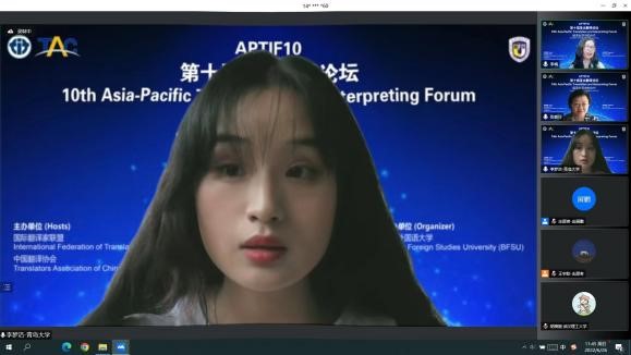 6月25日至26日,由国际翻译家联盟、中国翻译协会联合主办、北京外国语大学承办的第十届亚太翻译翻译论坛在北京举行,澳门十大电子正规游戏网站卞建华教授带领2020级英语笔译专业硕士研究生张钰、2020级外国语言学及应用语言学硕士研究生李梦洁参加了此次会议并做交流。