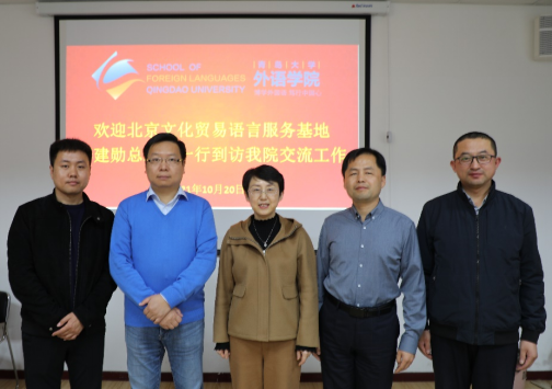 2021年10月20日下午,北京文化贸易语言服务基地总经理李建勋一行到十大电子正规游戏官网工作交流。澳门十大电子正规游戏网站院长卞建华,副院长宫英瑞、布占廷,英语系主任刑富坤教授参加了此次会议。