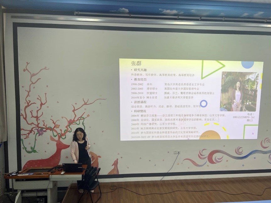 进入赛事动员环节,英语系吕云副主任做了写作大赛的简介和写作指导教师团队成员的介绍。英语系张驰老师对题型、比赛流程和备赛策略进行了讲解。
