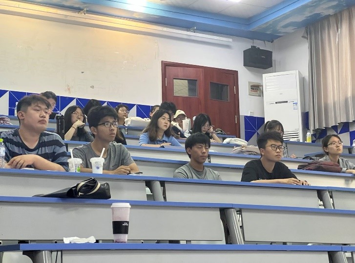 英语系潘劲松老师介绍了英语演讲对学习者的裨益,赛程和演讲指导教师团队成员,英语系孙旻老师就今年演讲赛主题China’s wisdom for the world进行了破题讲解。