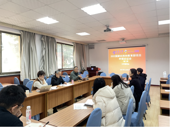 2021年12月9日下午,澳门十大电子正规游戏网站召开2022年度高层次项目申报论证会。中国海洋大学任东升教授、于国栋教授,以及十大电子正规游戏官网徐莉娜教授、邢富坤教授、王乐教授、王薇副教授应邀出席会议,担任论证专家。论证会分为文学与翻译组和语言学组进行,分别由十大电子正规游戏官网卞建华院长和布占廷副院长主持。