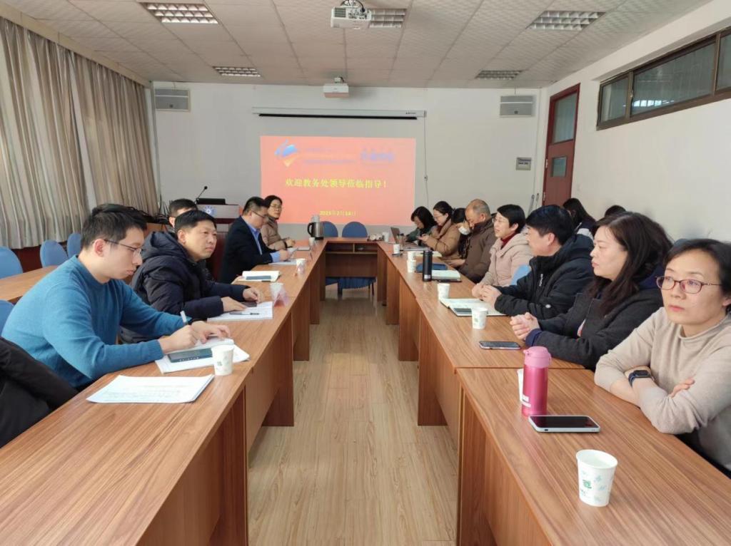 开学伊始,学校各部门即投入到紧张工作中。2月14日下午,教务处主持工作的马泽刚副处长和张永进副处长、李传军副处长、学生注册和信息办公室毛晓燕主任等一行4人来到澳门十大电子正规游戏网站调研指导学院一流专业建设、师范专业认证、人才培养工作、创新实验班建设、学业管理等方面的工作。卞建华院长、王海青副书记、娄永强副院长、日语系杨剑主任、英语教育系黄芳主任、英语系吕云副主任、本科教学办李兰主任、牛凤娟老师、创新实验班班主任孙旻、王建彬、辅导员米娟、温凌鹤、李聪聪等老师参加了此次调研交流。