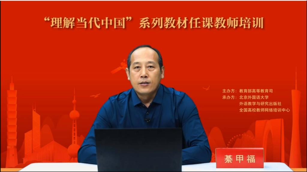 为帮助各高校任课教师准确把握“理解当代中国”系列教材的主要精神和重点内容,教育部高等教育司牵头,北京外国语大学、外语教学与研究出版社、全国高校教师网络培训中心于2022年8月5日至6日开展了全国“理解当代中国”任课教师培训。《汉德翻译教程》主编綦甲福教授和编者王奎志老师担任该册教材培训讲师。