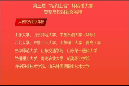 为汇聚和培养俄语人才,支持上合示范区建设,2020年在山东省委外办和山东省教育厅共同支持下策划创立了“相约上合杯”俄语大赛,由中俄(山东)教育国际合作联盟秘书处组织举办。