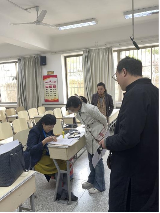 考务现场王俊菊教授向教育系副主任吕凯良老师和学院本科教学办公室负责考务的牛凤娟、陆慧两位老师细致询问此次考试工作准备、试卷材料保管、考场安排等环节,逐条确认了考试组织程序,并在考务老师的陪同下巡视了各个考场,对十大电子正规游戏官网此次考试的组织工作给予充分肯定。王俊菊教授也向考务老师征求了对考试的组织方的相关工作建议。