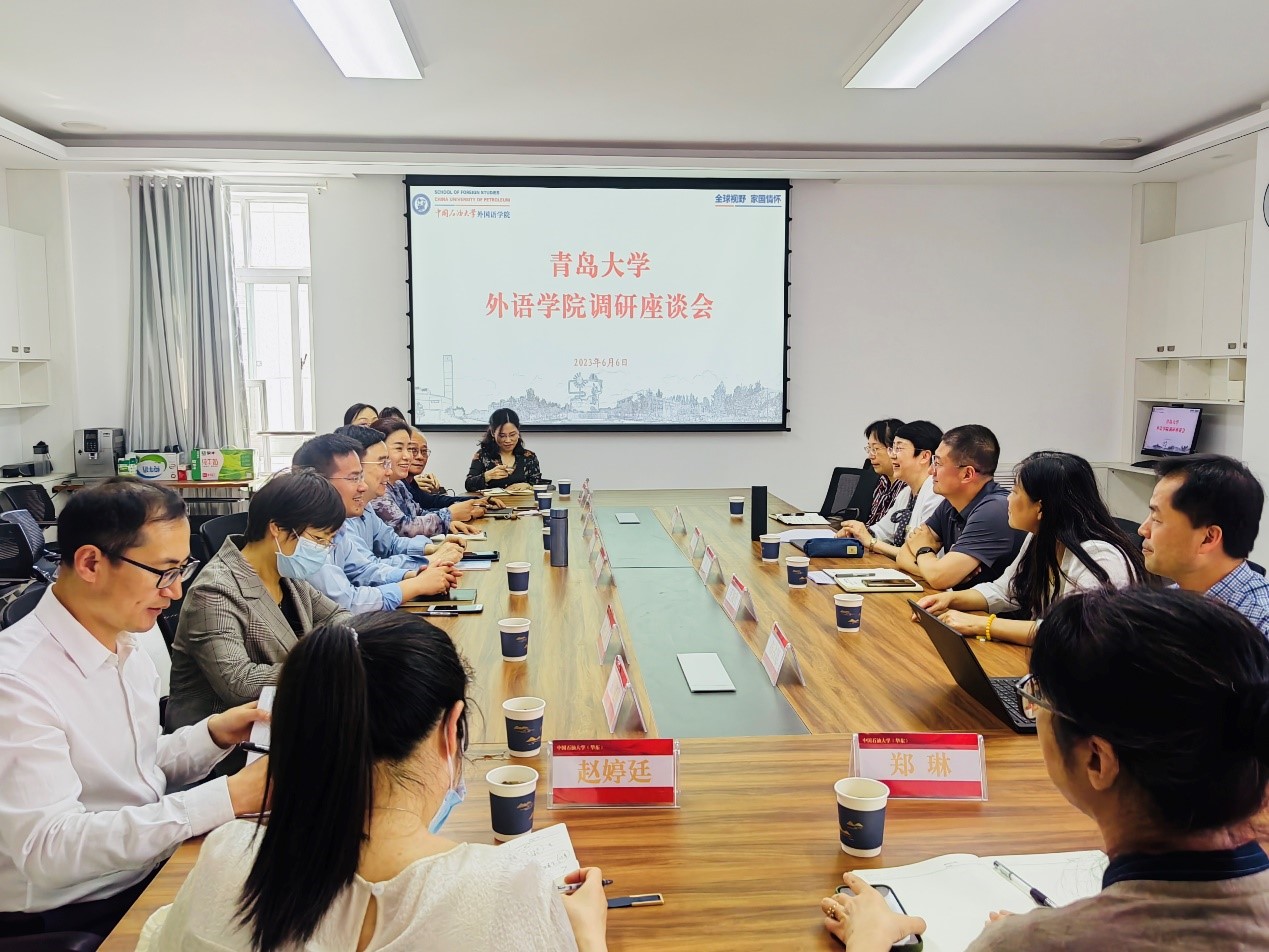 6月5日,澳门十大电子正规游戏网站一行五人赴中国石油大学(华东)外国语学院调研,参加调研的有卞建华院长、周伟书记、王海青副书记、宫英瑞副院长和布占廷副院长。中国石油大学(华东)外国语学院毛浩然院长、朱惠平书记、邹维忠副书记、孙大满副院长、郭月琴副院长、张建科副院长等参加调研座谈。